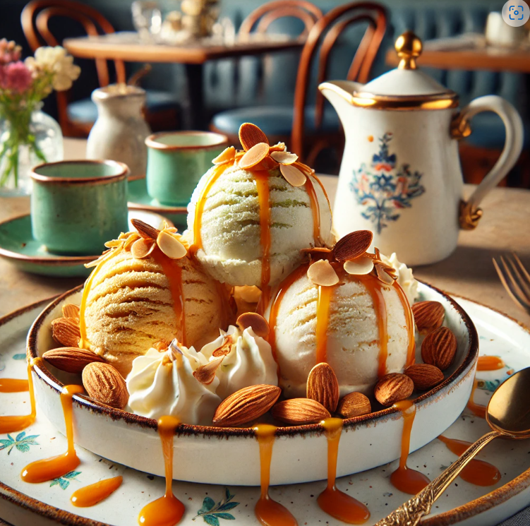 1) **토르혼 (Turrón)** - 아몬드와 꿀로 만든 스페인 전통 디저트인 토르혼을 아이스크림으로 변형한 맛입니다. 고소하면서도 달콤한 풍미가 특징입니다.
